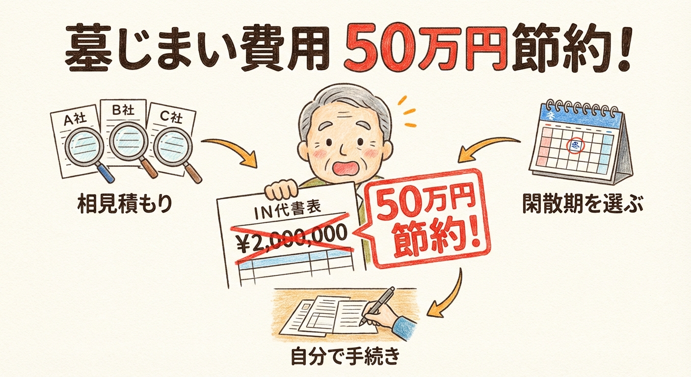 一括見積もりサイトでの業者比較は必須。その上で時期・書類・改葬先の最適化を図ることで、50万円の大幅削減が実現できます。