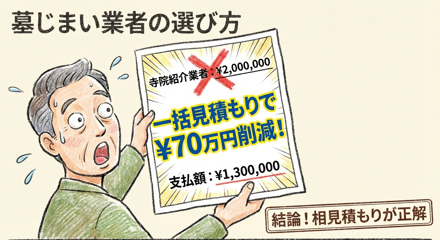 この衝撃的な価格差は特別なケースではありません。墓じまい経験者10人のうち、相見積もりを実施した全員が20万円以上の節約に成功しています。